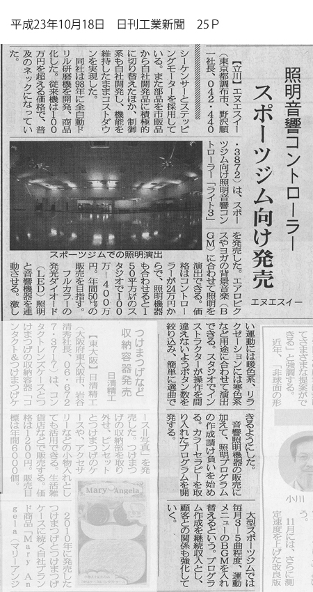 (2011.10)10/18付日刊工業新聞に弊社製品記事が掲載されました